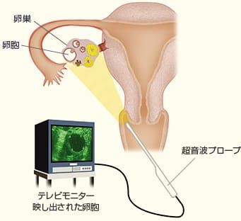 卵胞の発育の様子がテレビモニターで映し出される。