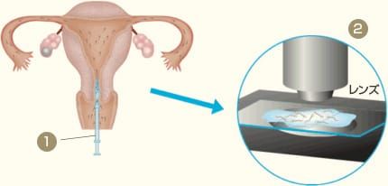 - 性交後の子宮頚管粘液を注射器で採取