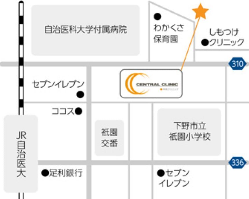 新国道4号線を宇都宮方面に向かって進み「薬師寺」を自治医大方面に向かってください。自治医大東側となります。